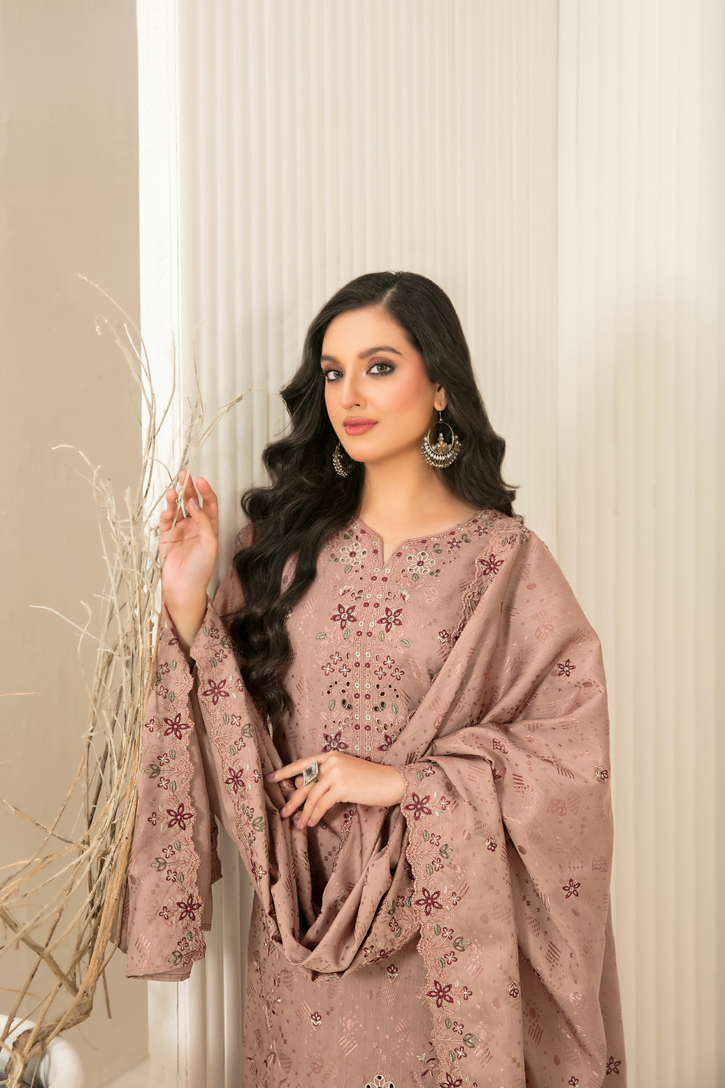 • Stitched Fancy Embroidered Viscose Jacquard Shirt Designs