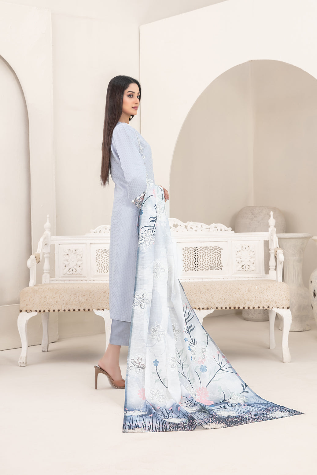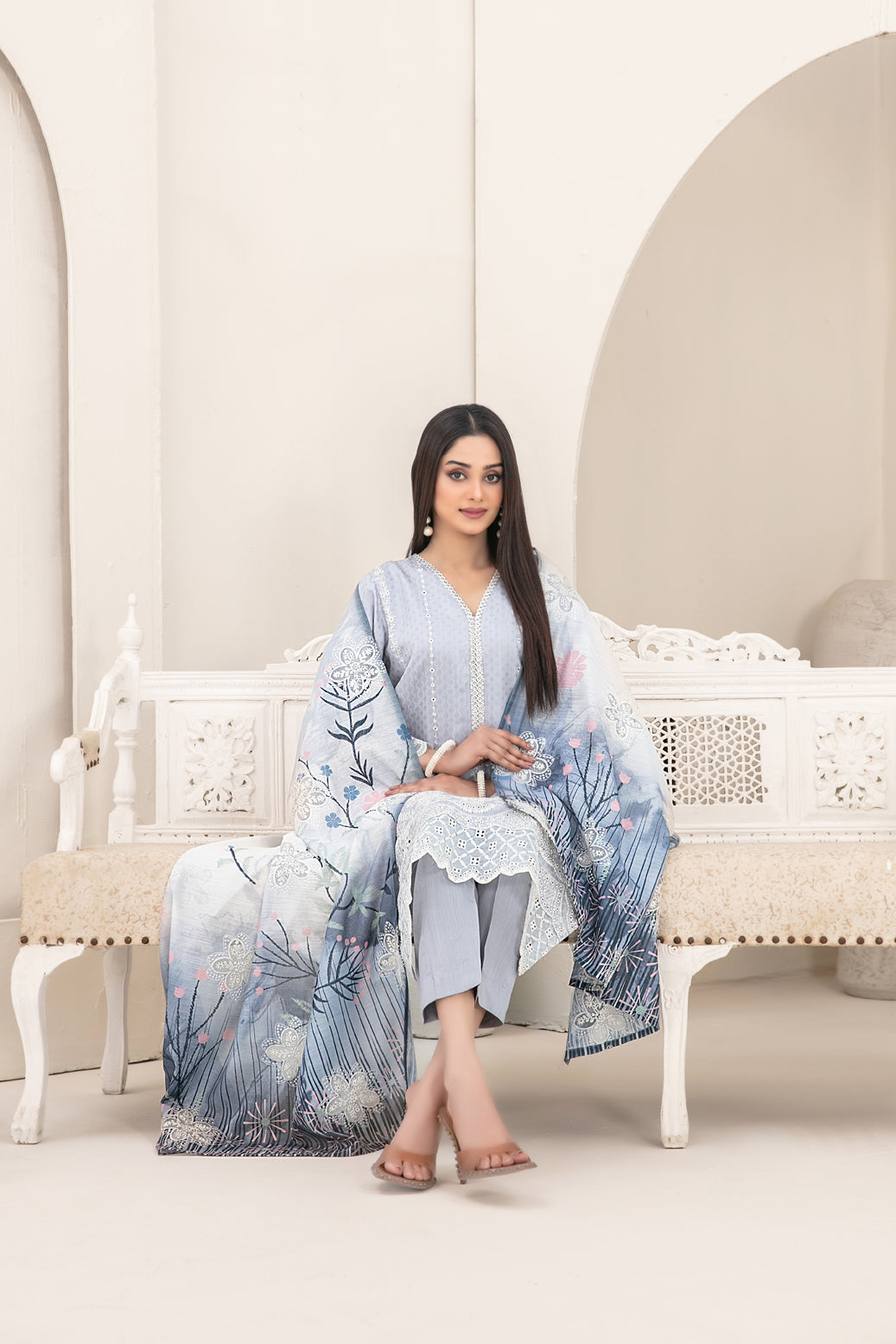 - Laserkari Embroidered Digital Printed Slub Dupatta