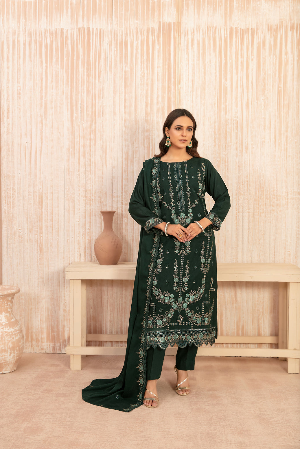 3 Piece Un-Stitched Collection By Tawakkal Fabrics, Attractive & Elegant Embroidered Leather Peach Collection 2025: