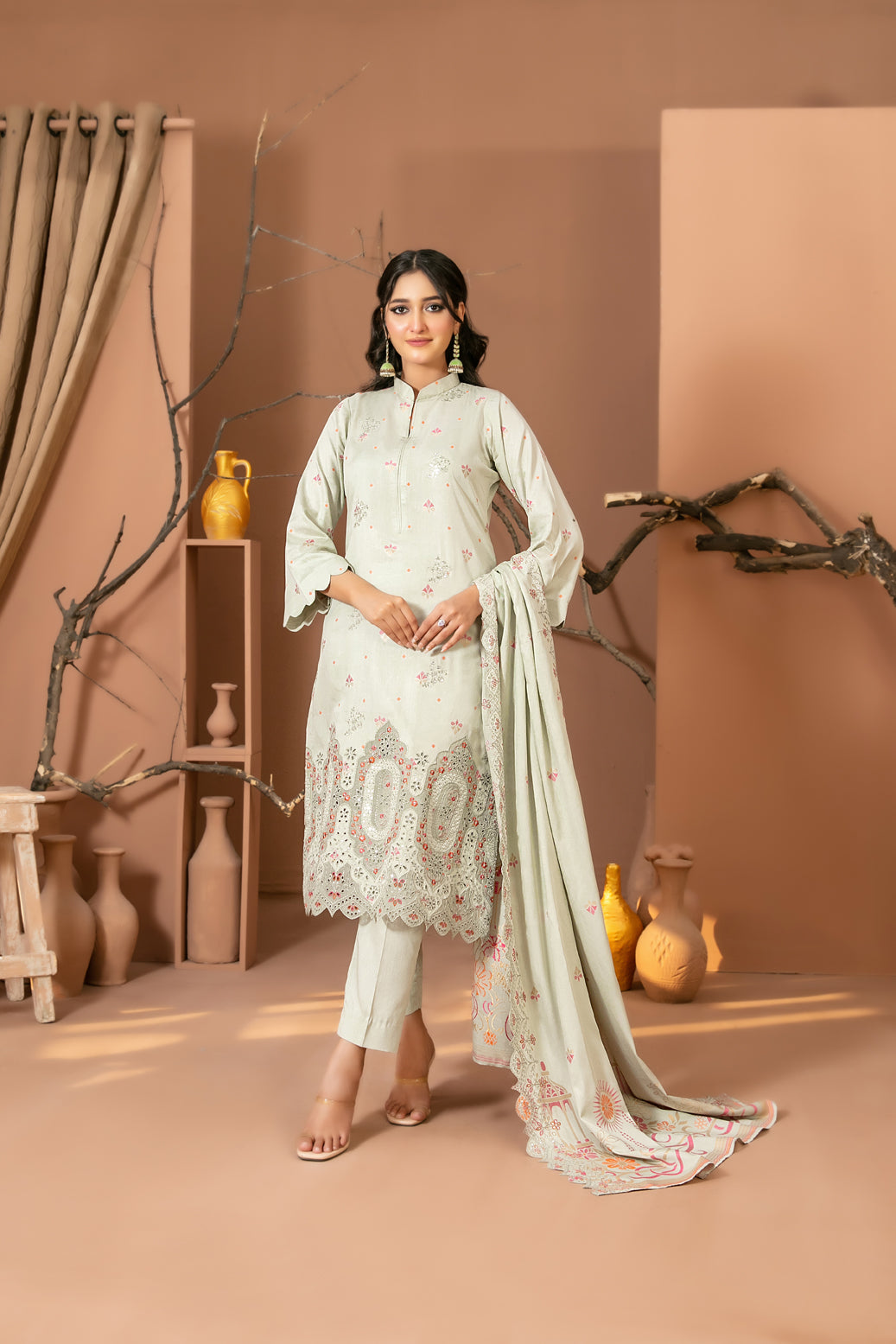 • Un-stitched Embroidered Staple Banarsi Shirt Fabric with