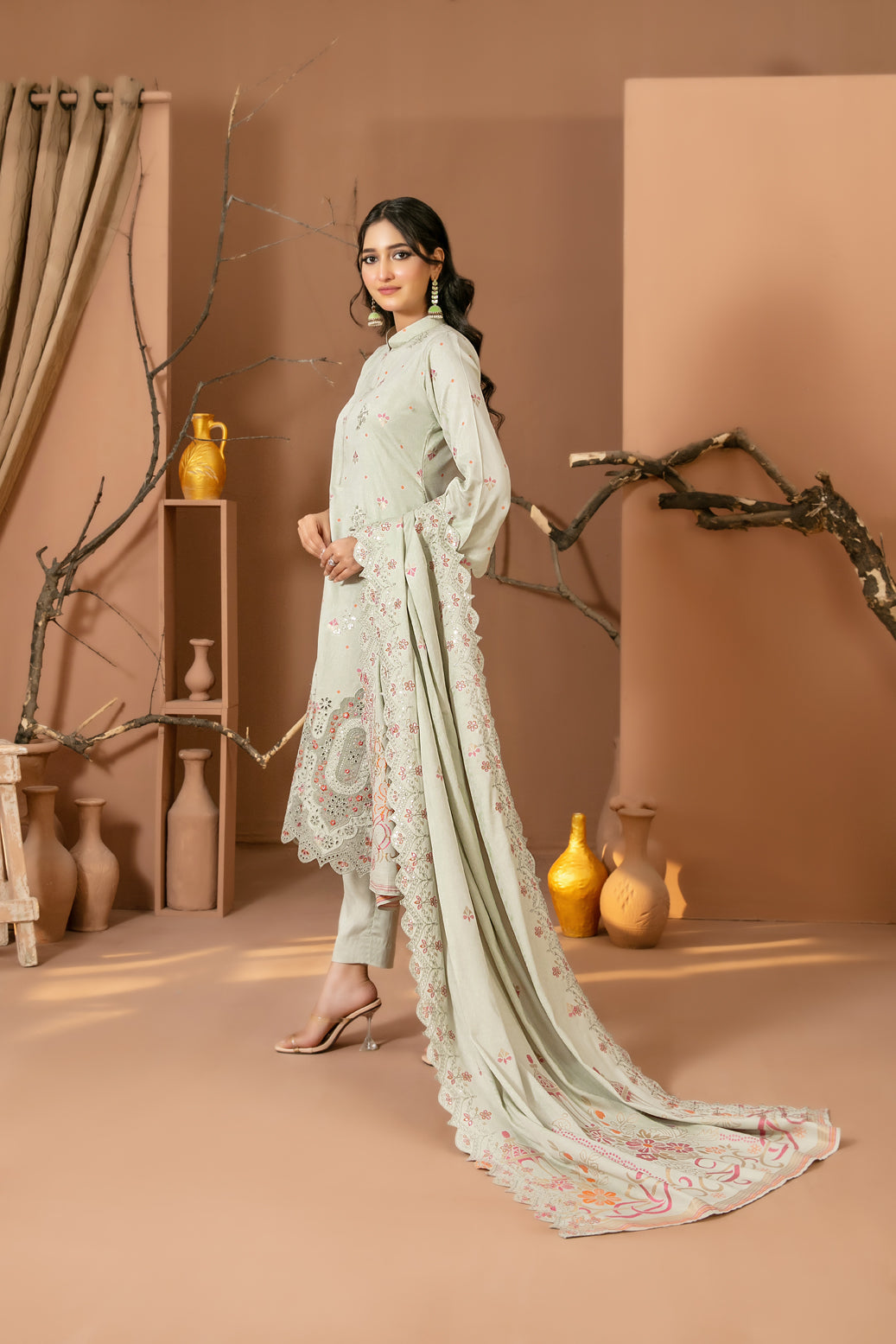 • Embroidered Staple Banarsi Shawl Dupatta