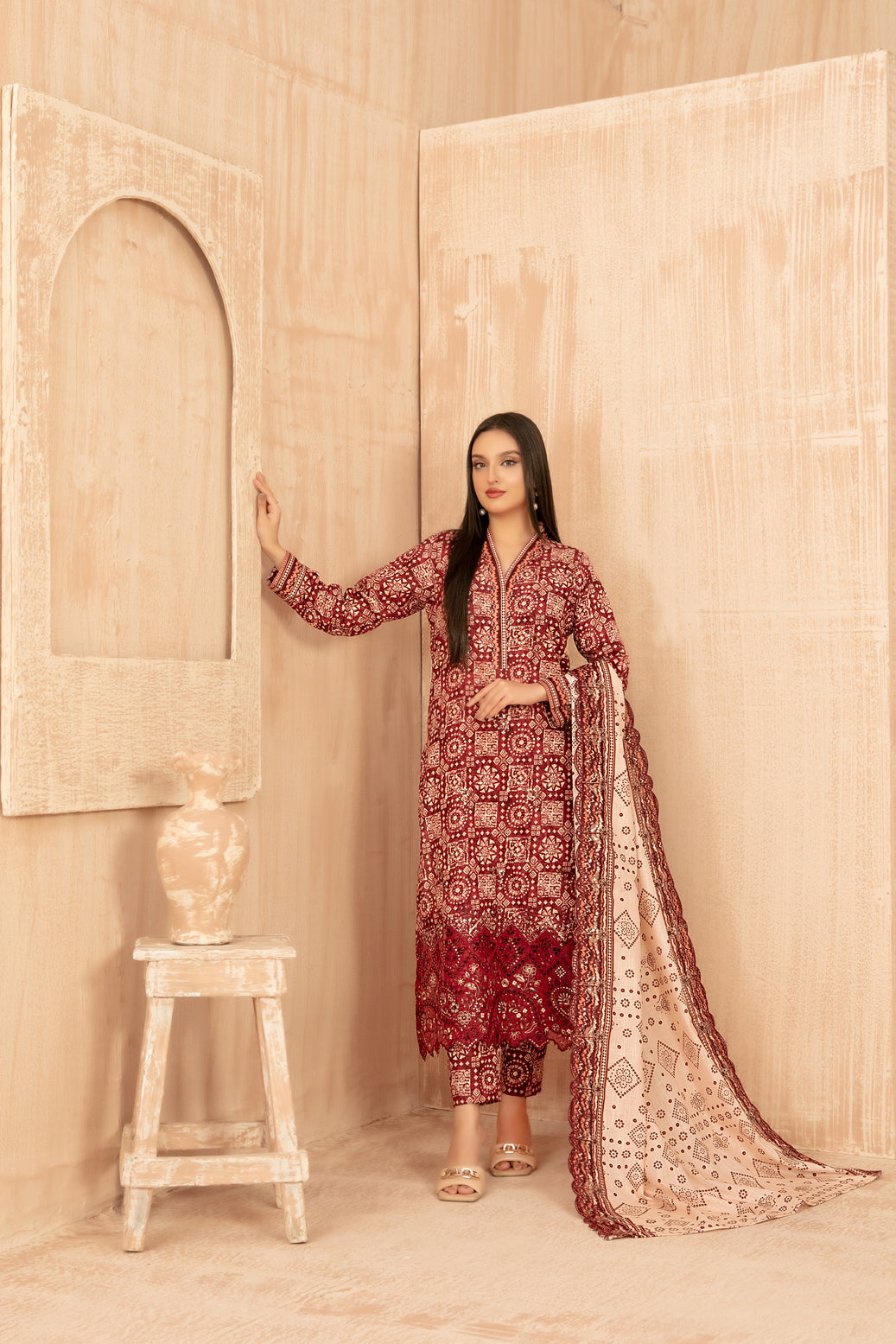 3 Piece Un-Stitched Collection By Tawakkal Fabrics, Attractive & Elegant Embroidered Khaddar Collection Comes With :
