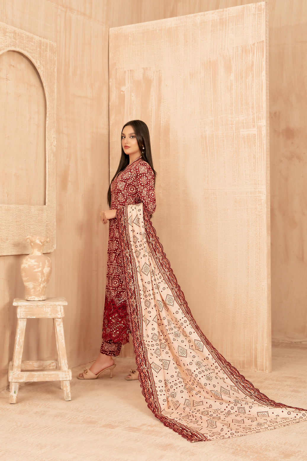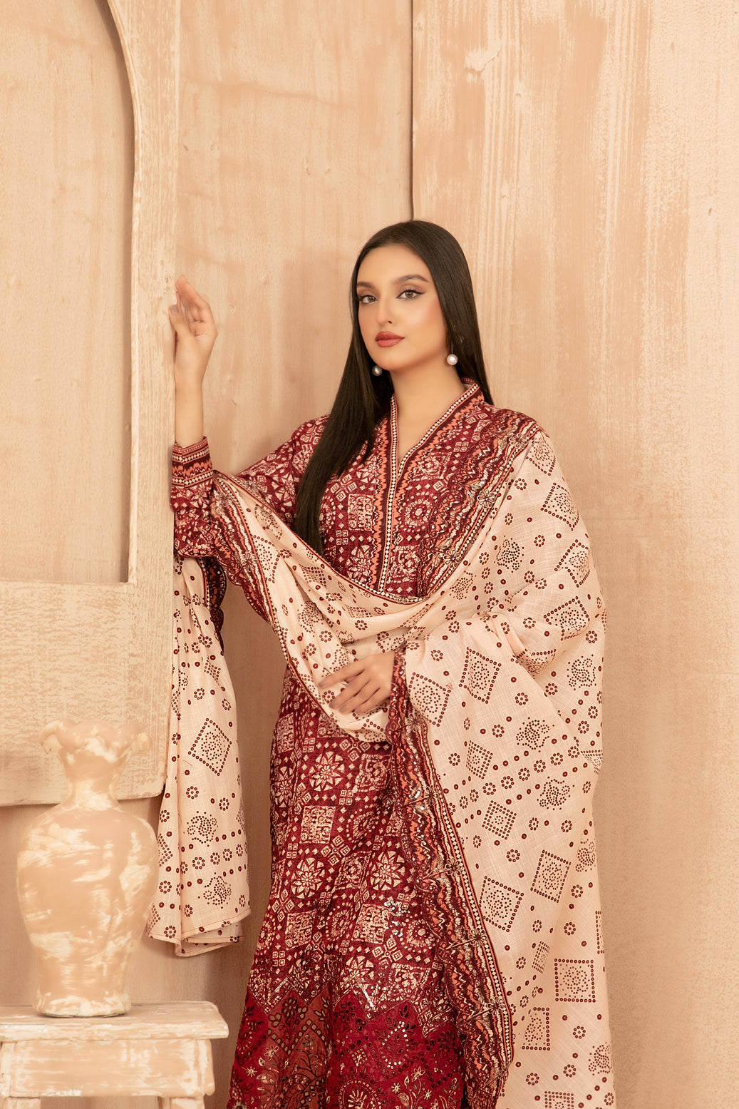 - Exclusive Rotary Printed Cross Khaddar Embroidered Cutwork Dupatta