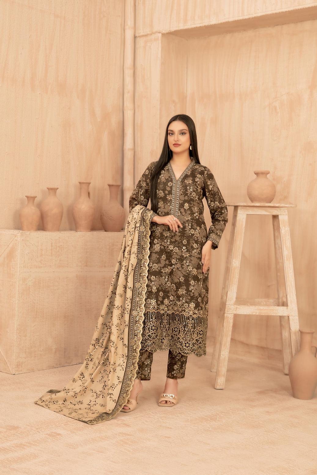 3 Piece Un-Stitched Collection By Tawakkal Fabrics, Attractive & Elegant Embroidered Khaddar Collection Comes With :