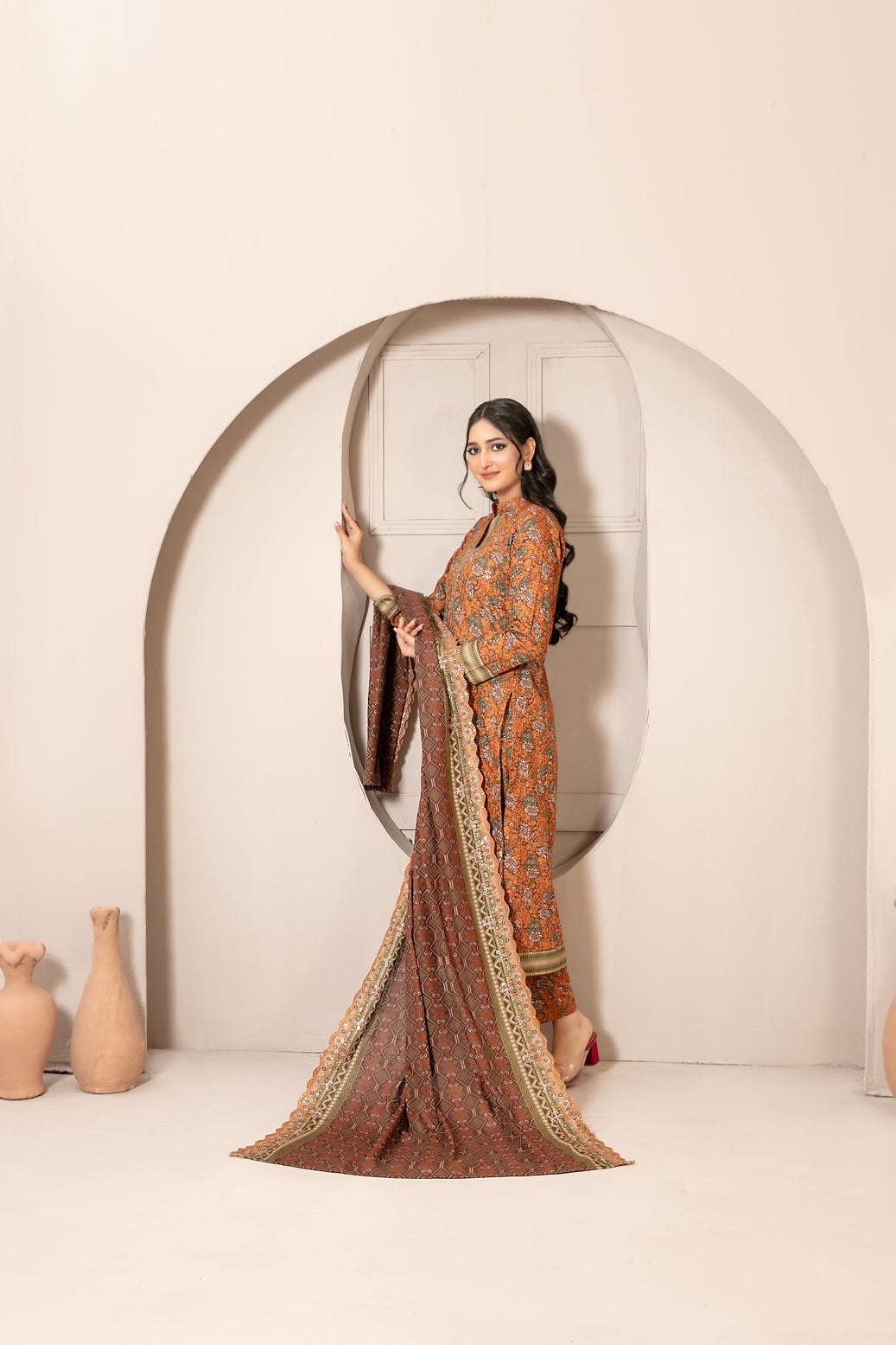 • Exclusive Rotary Printed Cross Khaddar Embroidered Cutwork Dupatta