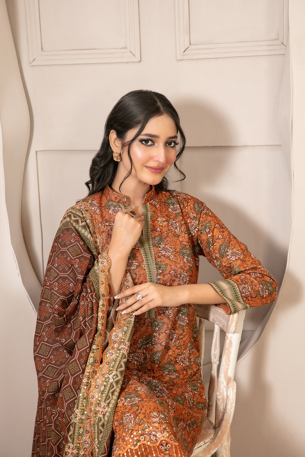 • Un-Stitched Embroidered Rotary Printed Cross Khaddar Shirt Designs