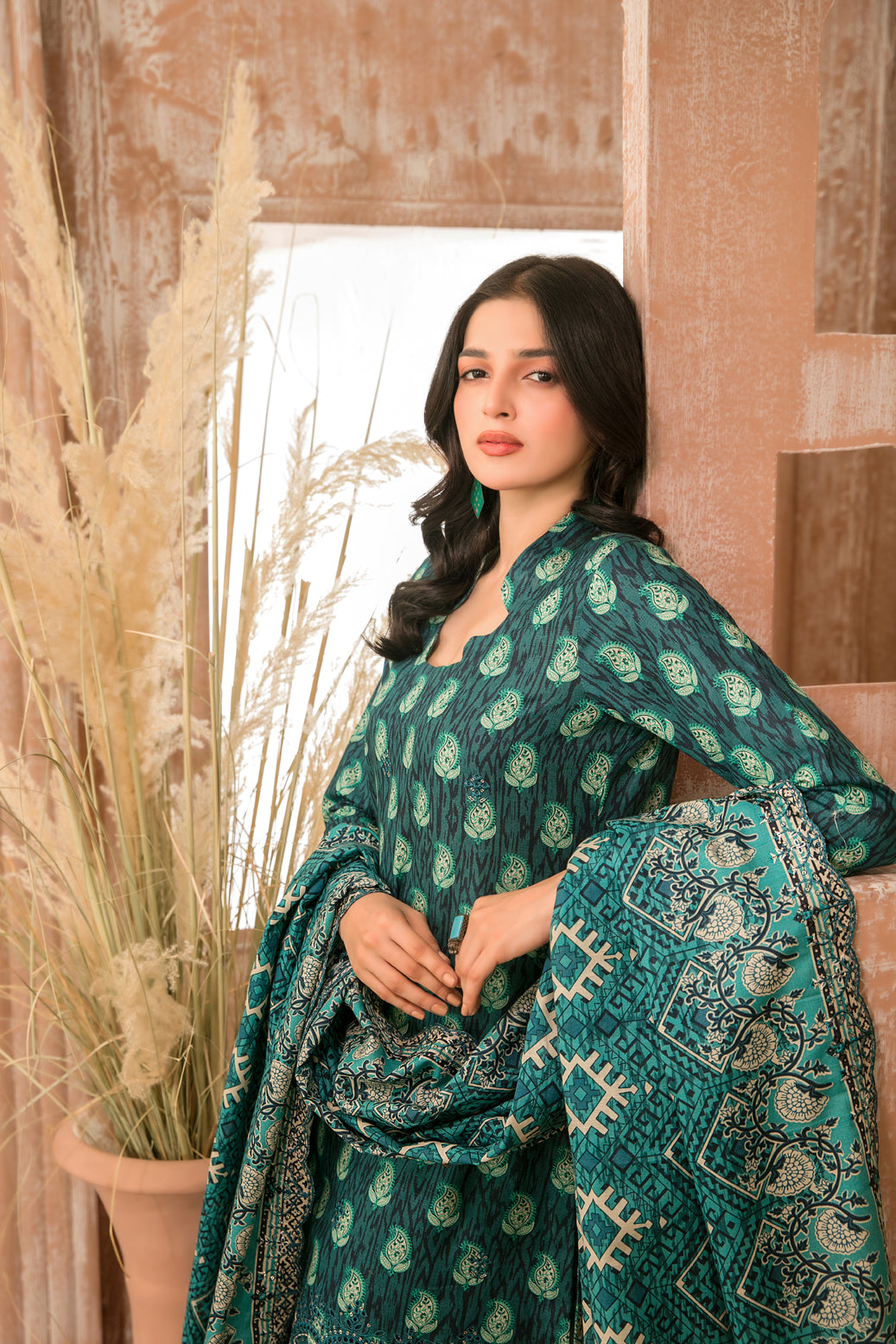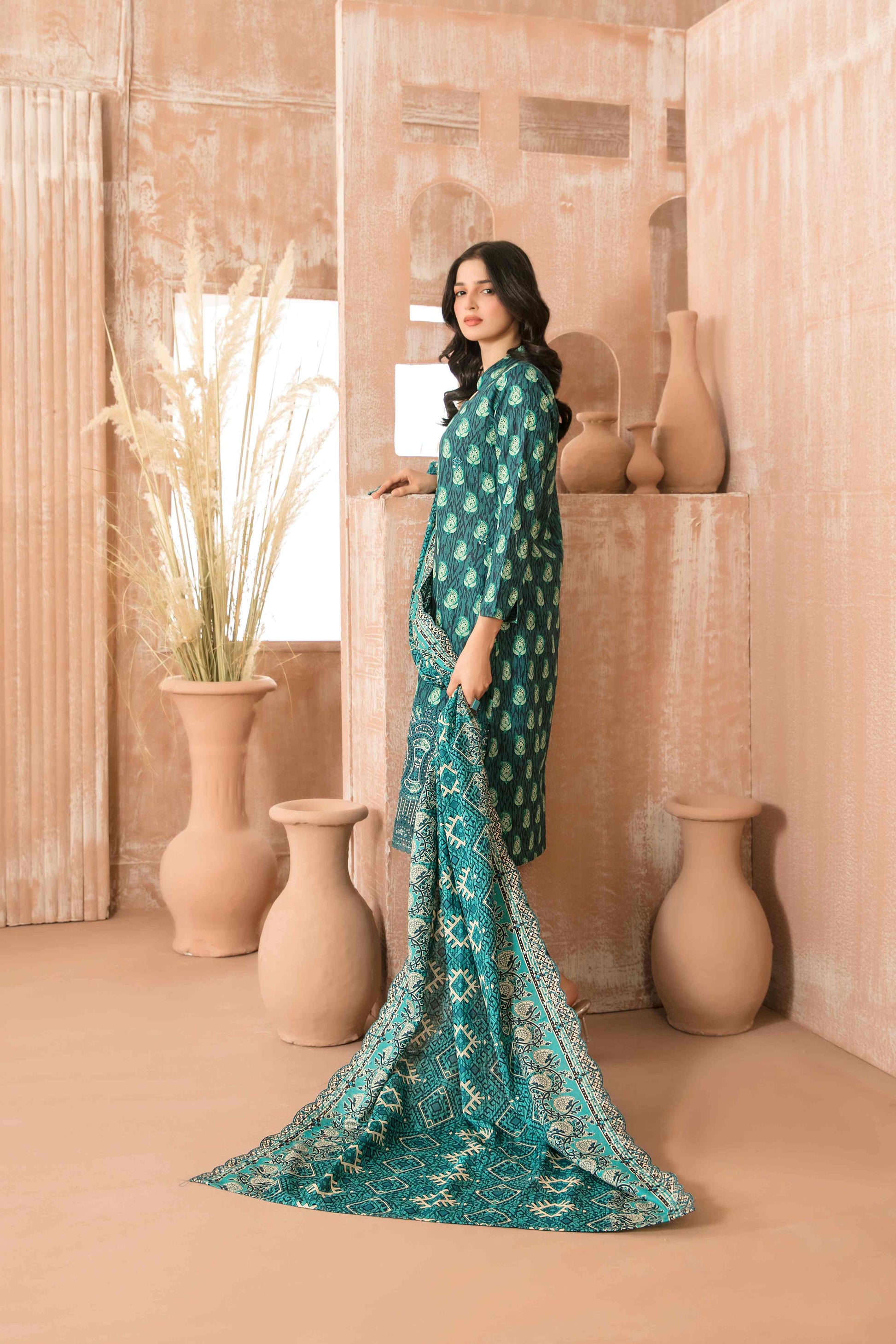 - Un-Stitched Rotary Printed Cross Khaddar Shalwar Fabric