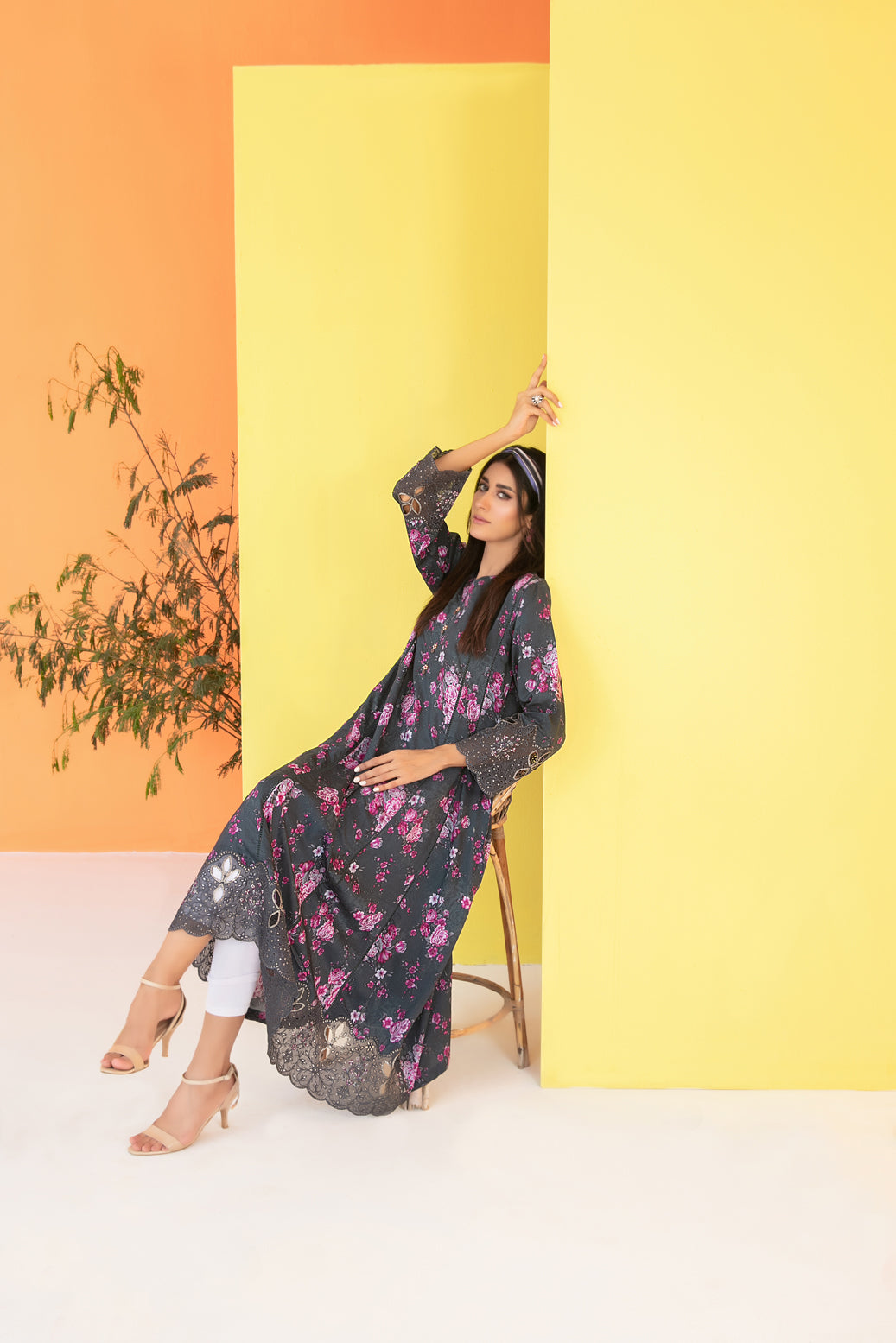 • Stitched Embroidered Digital Printed Staple Maxi with embellishments
