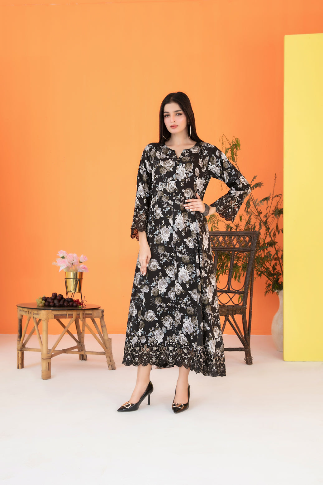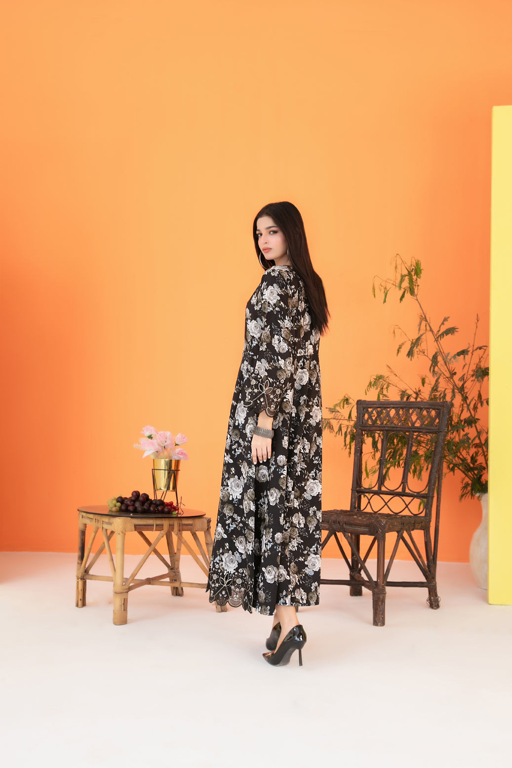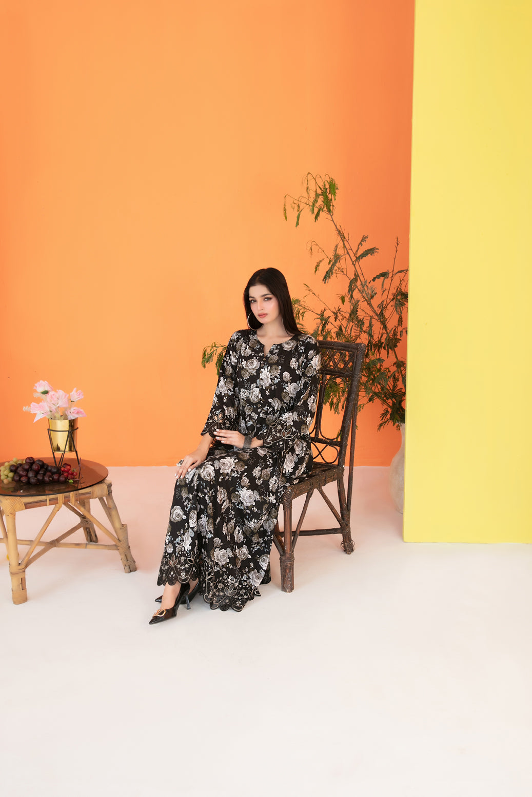 • Stitched Embroidered Digital Printed Staple Maxi with embellishments