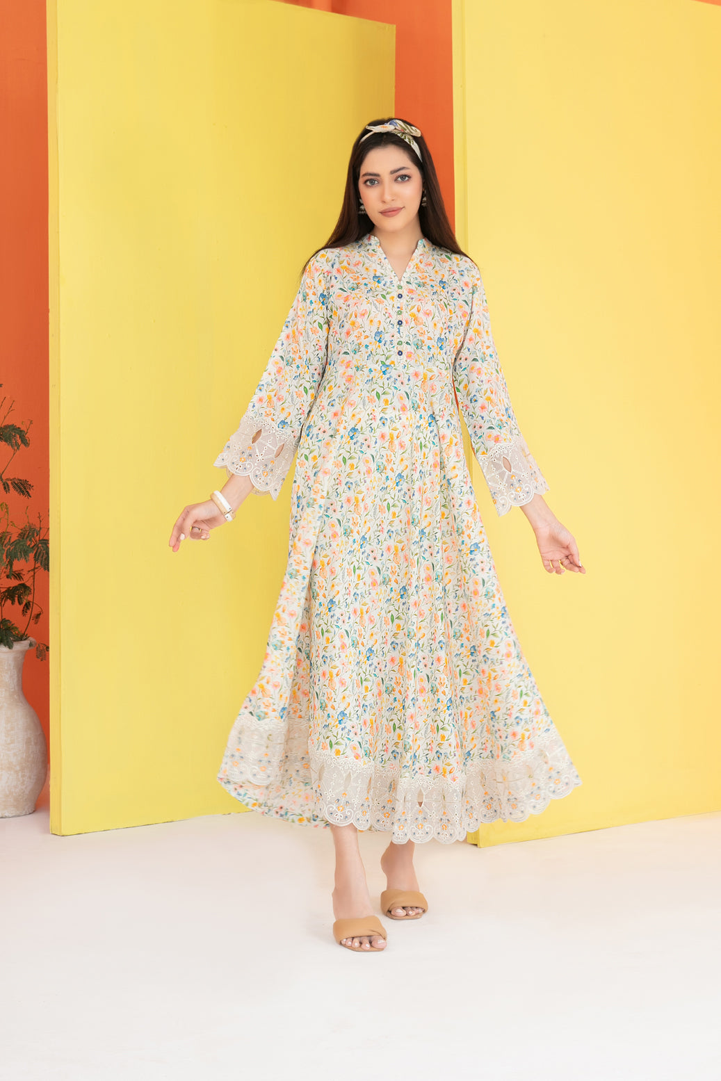 • Stitched Embroidered Digital Printed Staple Maxi with embellishments