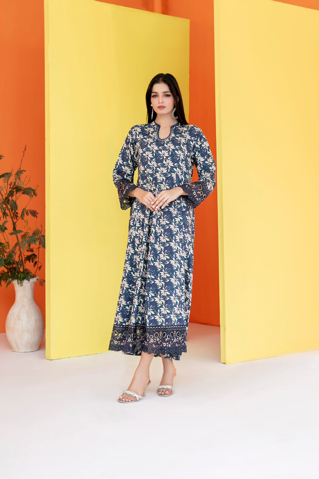 • Stitched Embroidered Digital Printed Staple Maxi with embellishments