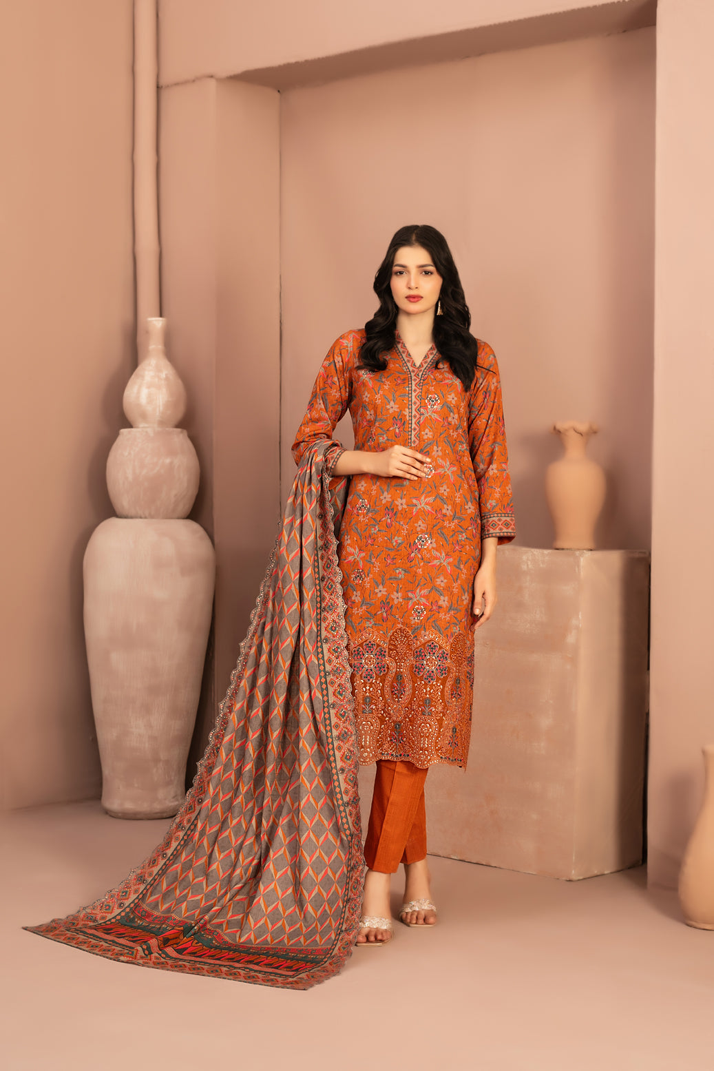 3 Piece Un-Stitched Collection By Tawakkal Fabrics, Attractive & Elegant Embroidered Leather Peach Collection 2025: