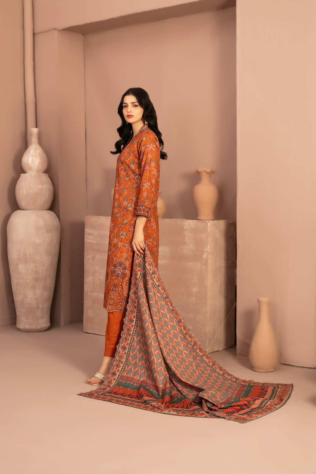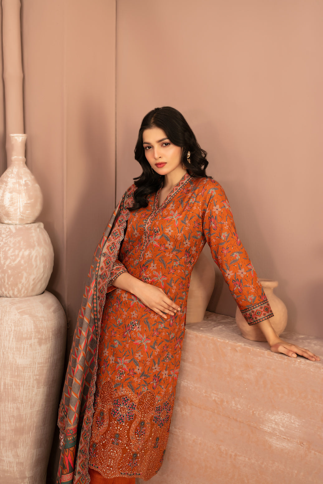 • Un-Stitched Embroidered Digital Printed Khaddar Shirt Designs