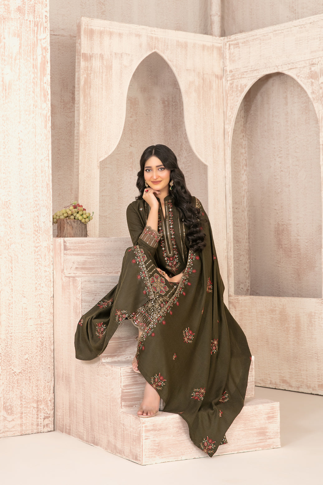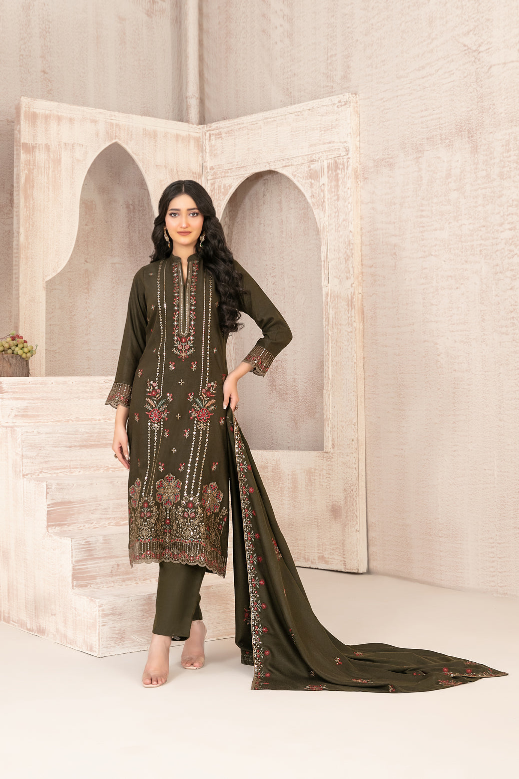 3 Piece Un-Stitched Collection By Tawakkal Fabrics, Attractive & Elegant Embroidered Leather Peach Collection 2026:
