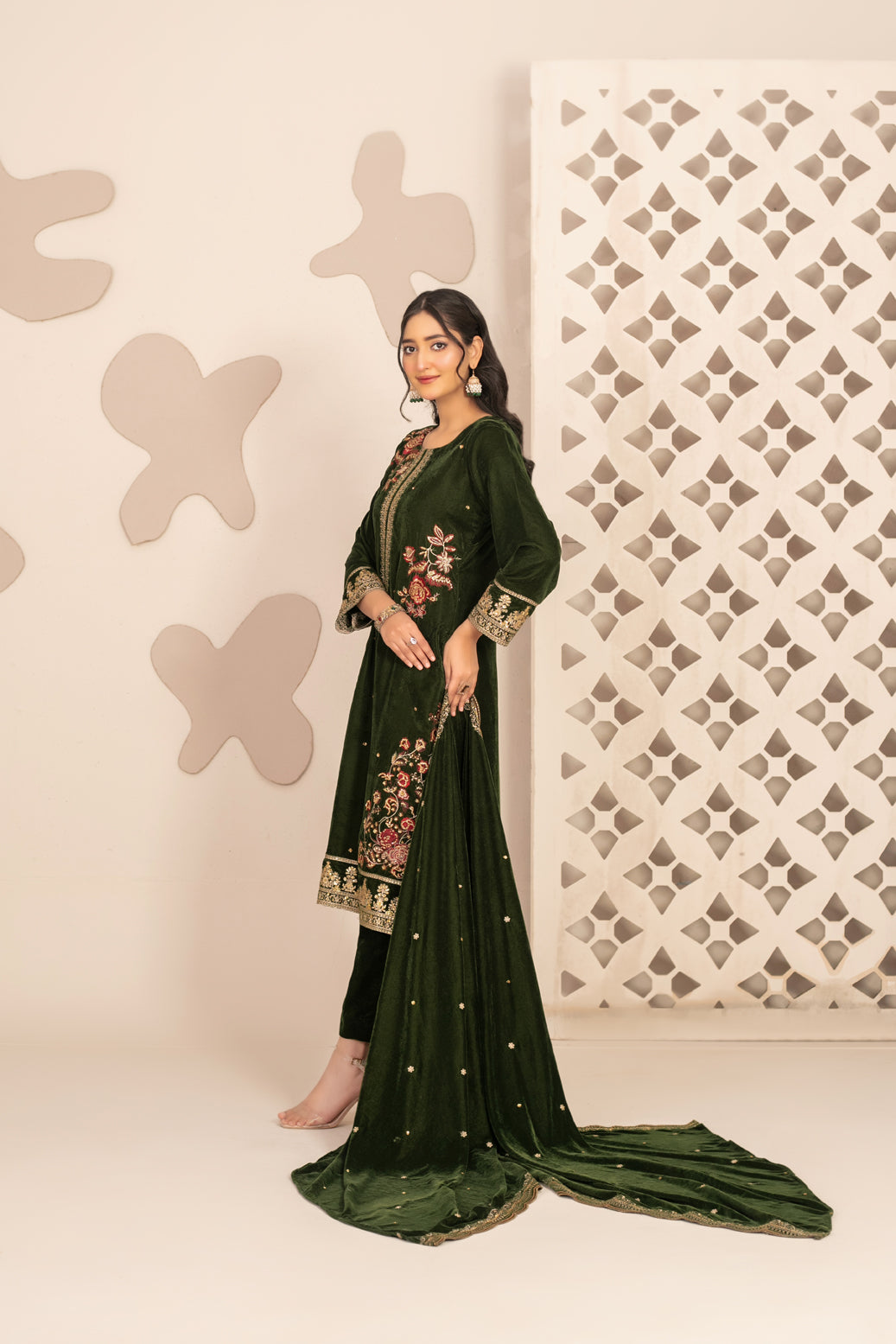 - Fancy Embroidered Velvet Dupatta