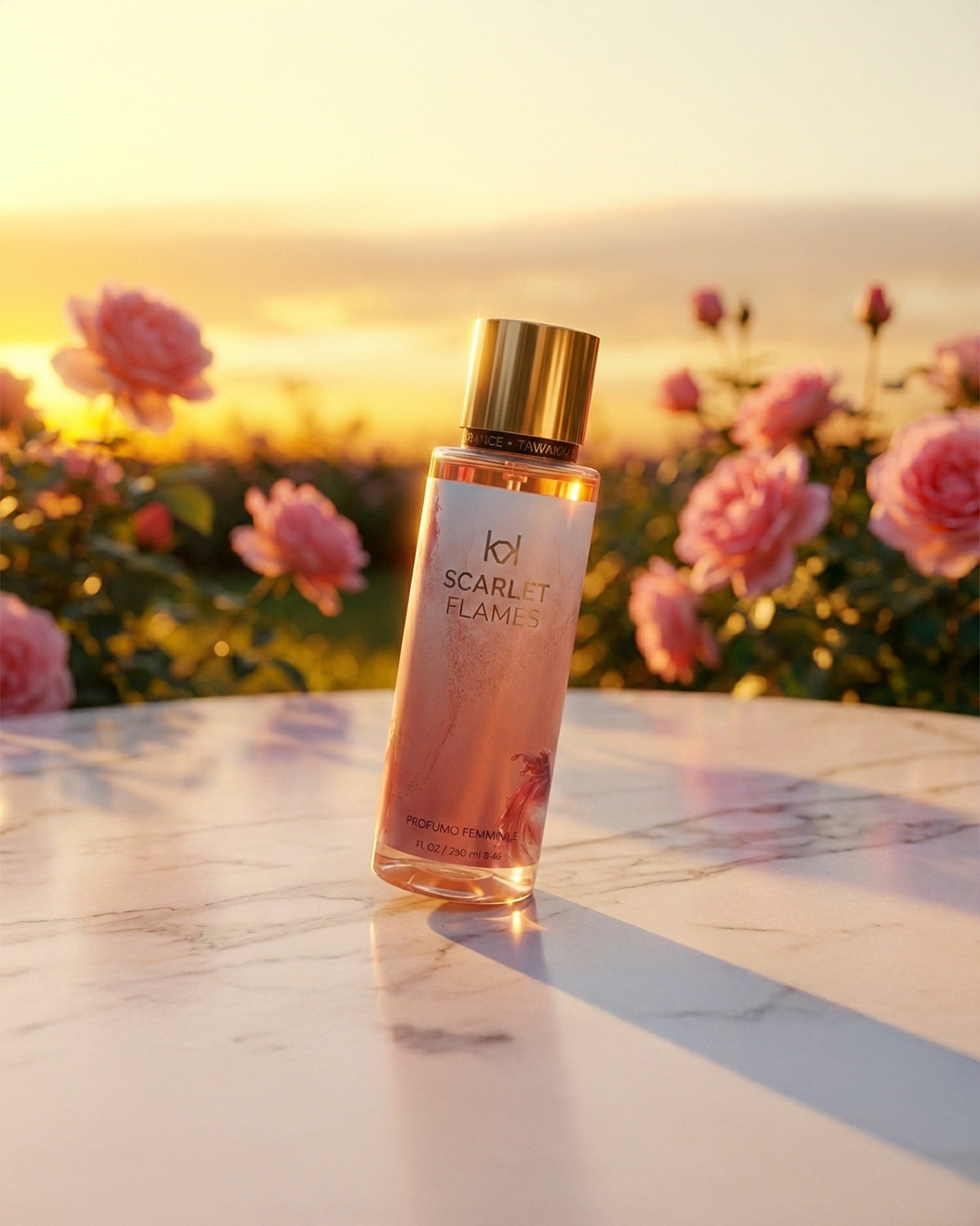 Scarlet Flames is a captivating feminine fragrance that embodies elegance, warmth, and sensual charm. Opening with the vibrant freshness of pomegranate, the scent unfolds into a delicate floral heart of red peony, adding softness and sophistication. The fragrance settles into a rich and comforting base of vanilla and oak, creating a long-lasting, graceful finish.